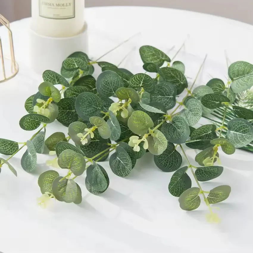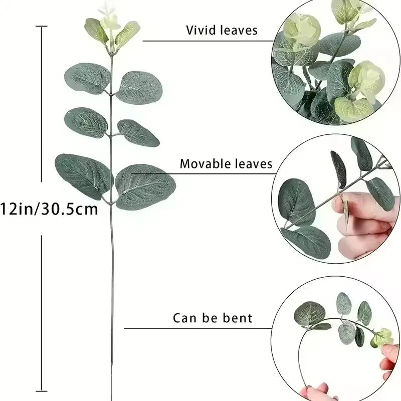 - Realismo Detallado: Fabricadas con plástico de alta calidad, estas ramas de eucalipto imitan a la perfección la textura y el color verde característico de la planta natural, aportando un toque botánico hiperrealista.